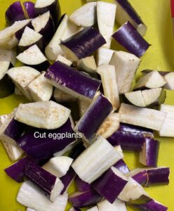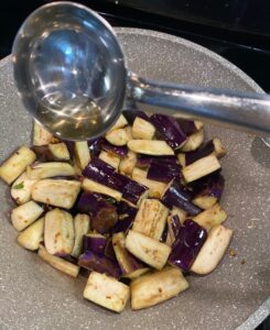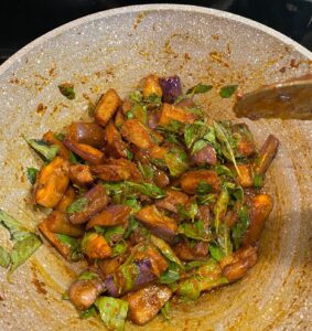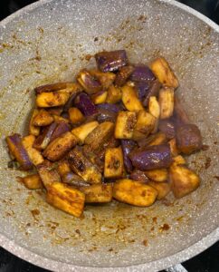 - Again add a tablespoon of oil and fry eggplants on high heat for 3 minutes